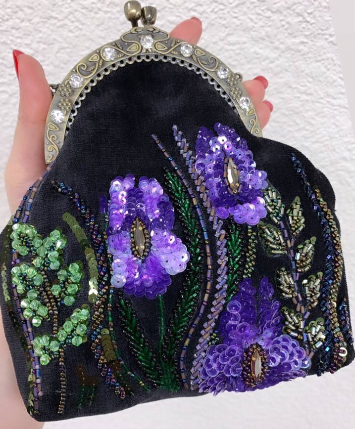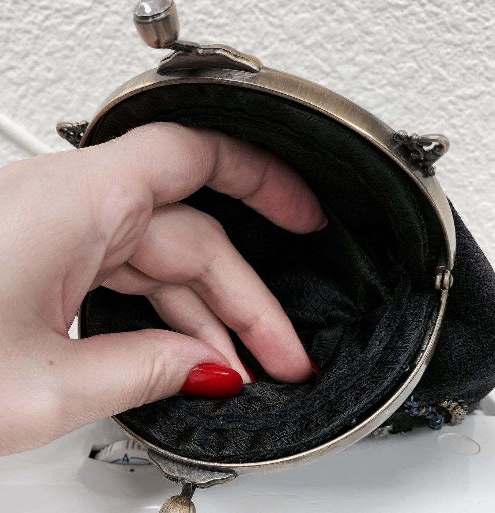 — обработка внутренней зоны сумочки с помощью тесьмы